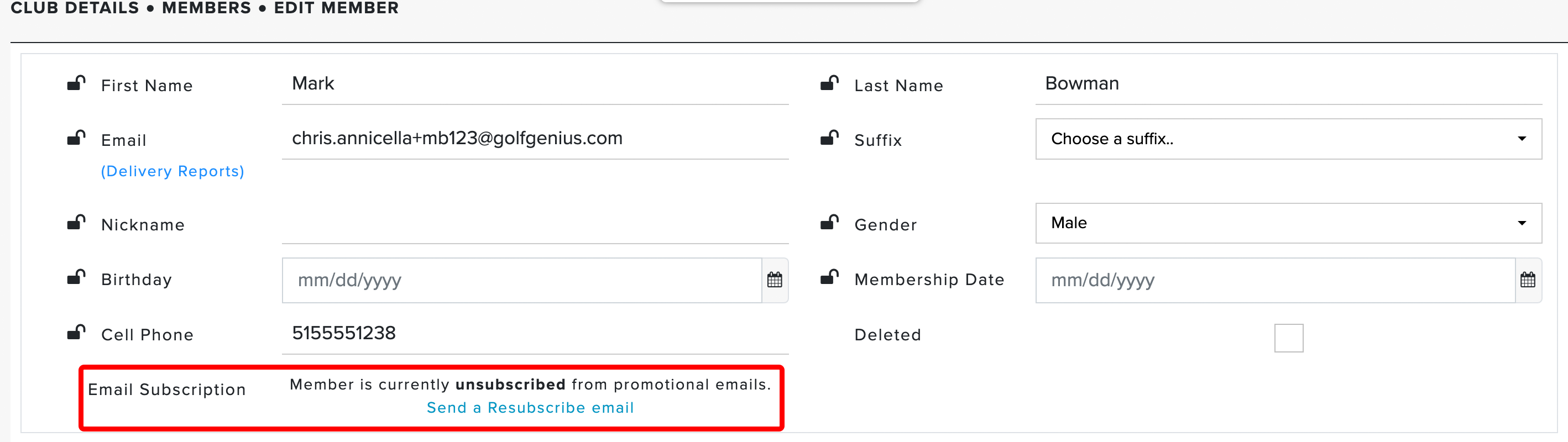 If a member has unsubscribed from emails or suppressed them, you can send them a message when editing the member profile so they can resubscribe. To send a message to a member to resubscribe to emails, follow these directions: